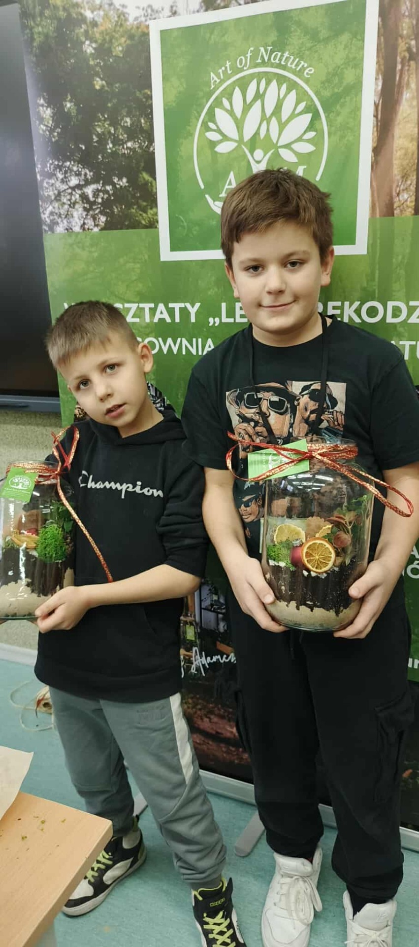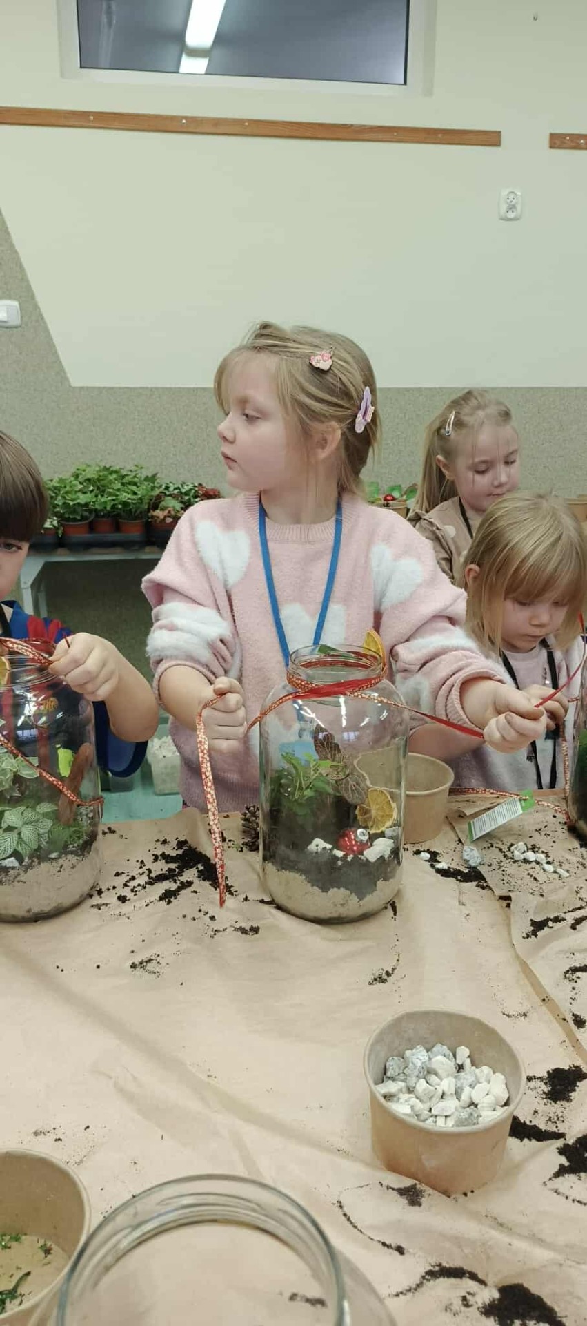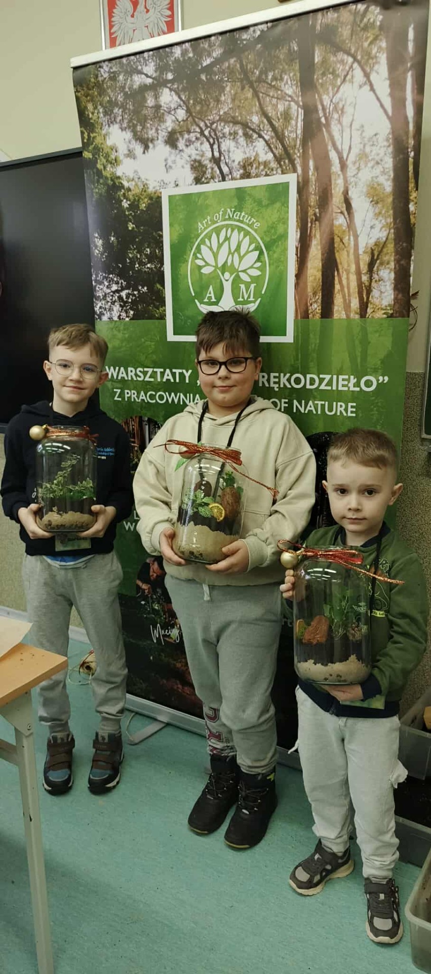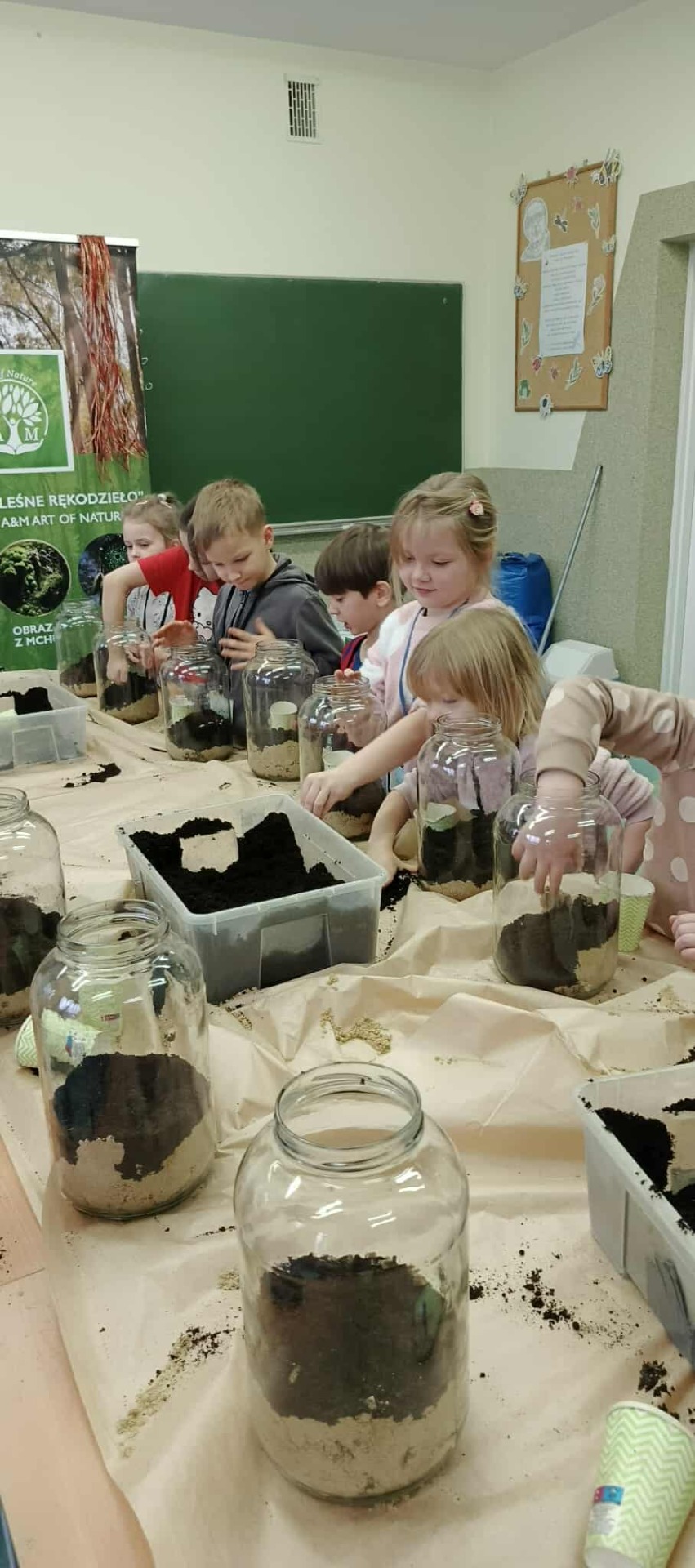 Drugą częścią spotkania stanowiły warsztaty „Las w słoiku”, podczas których uczestnicy stworzyli własne miniaturowe ekosystemy. Dzieci dowiedziały się, jak funkcjonuje las, dlaczego rośliny są tak ważne i jak dbać o przyrodę w codziennym życiu.