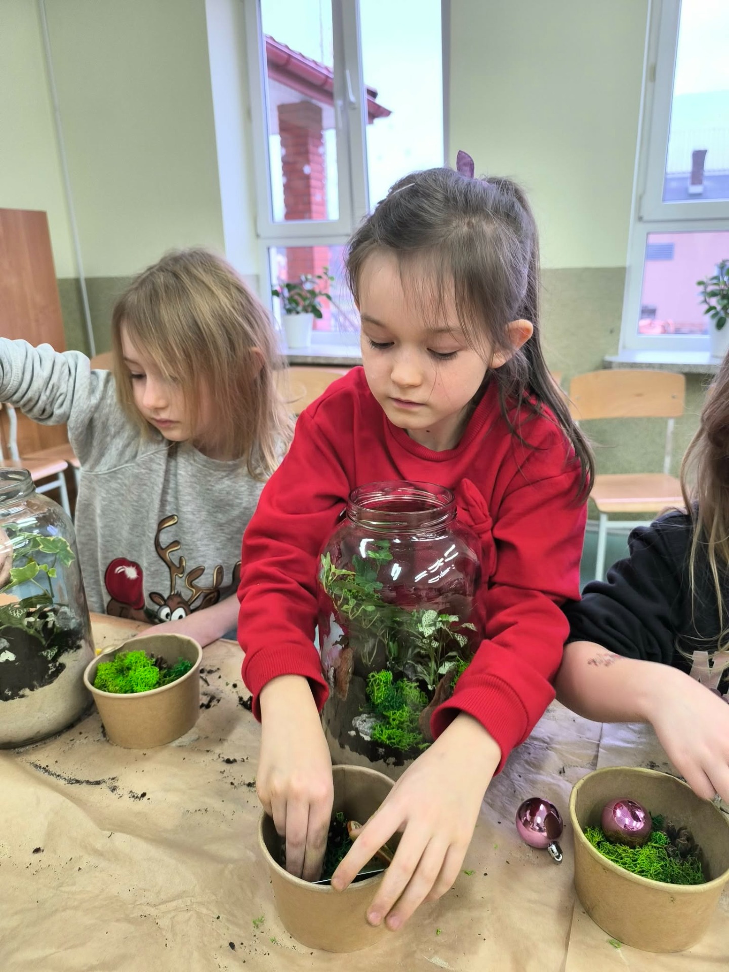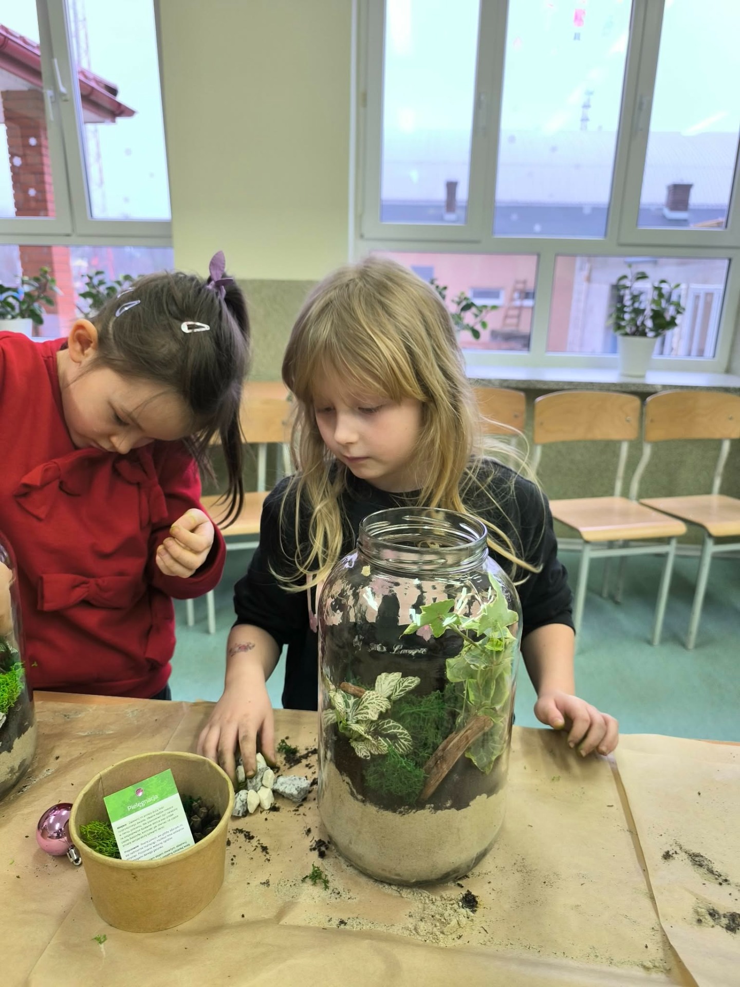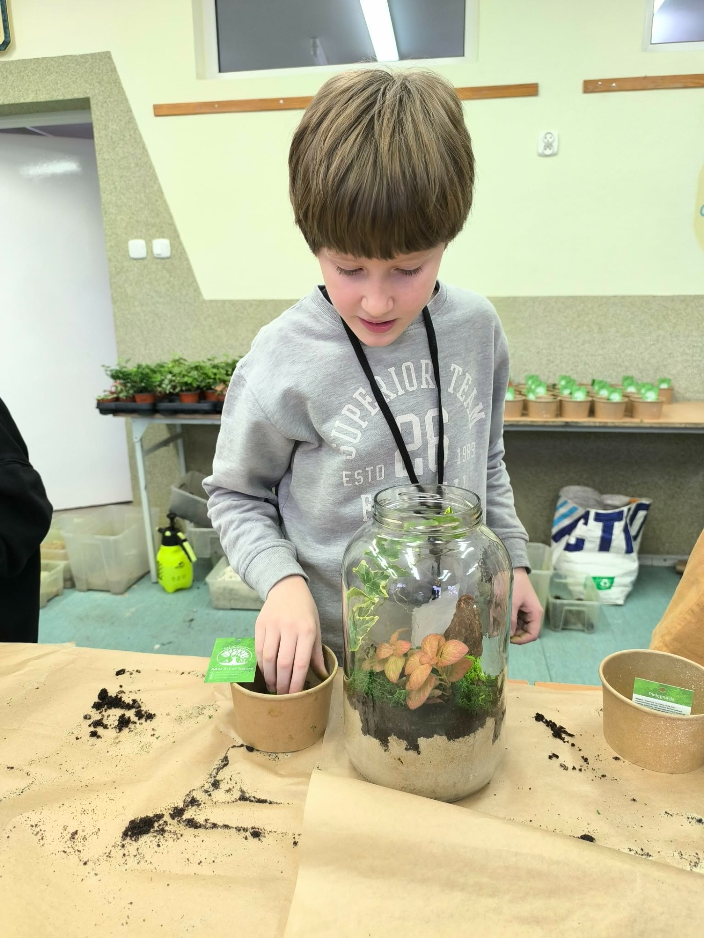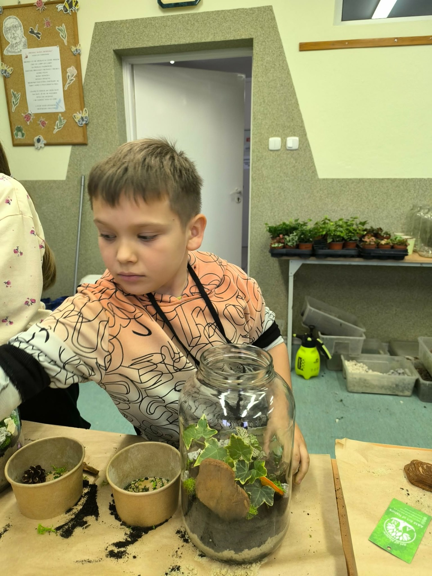 Drugą częścią spotkania stanowiły warsztaty „Las w słoiku”, podczas których uczestnicy stworzyli własne miniaturowe ekosystemy. Dzieci dowiedziały się, jak funkcjonuje las, dlaczego rośliny są tak ważne i jak dbać o przyrodę w codziennym życiu.