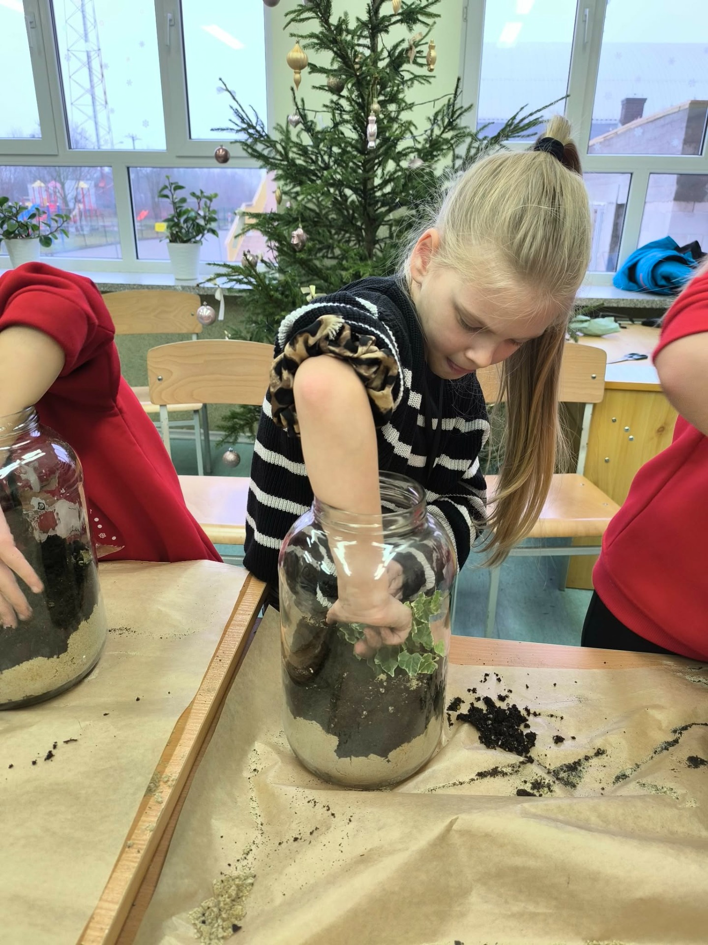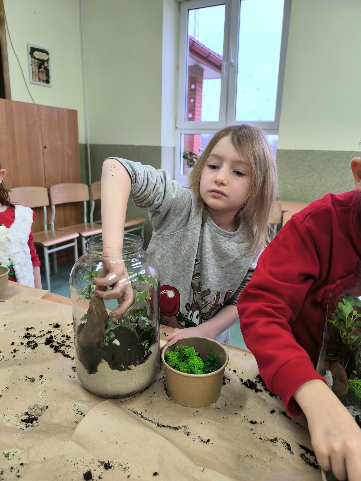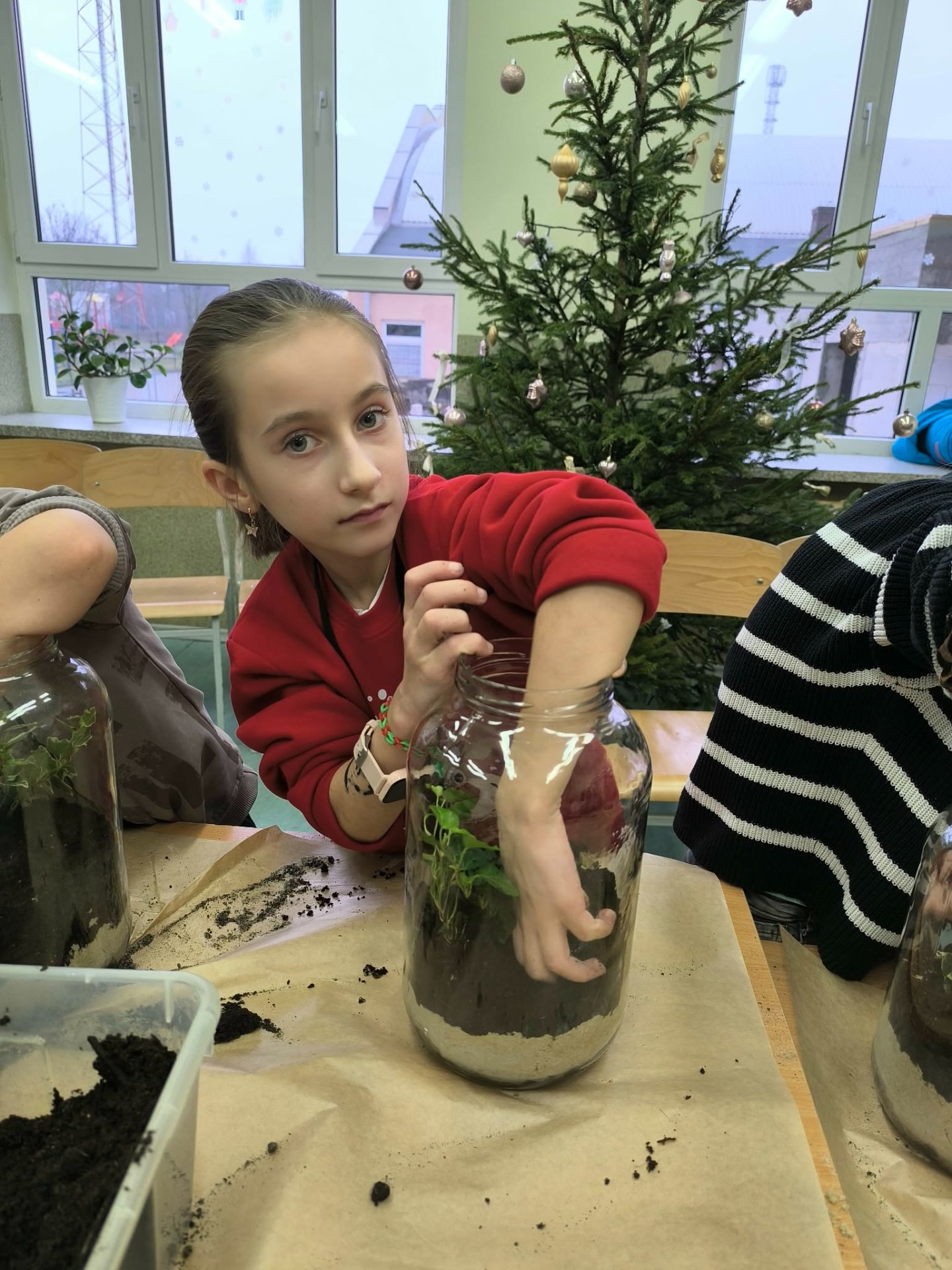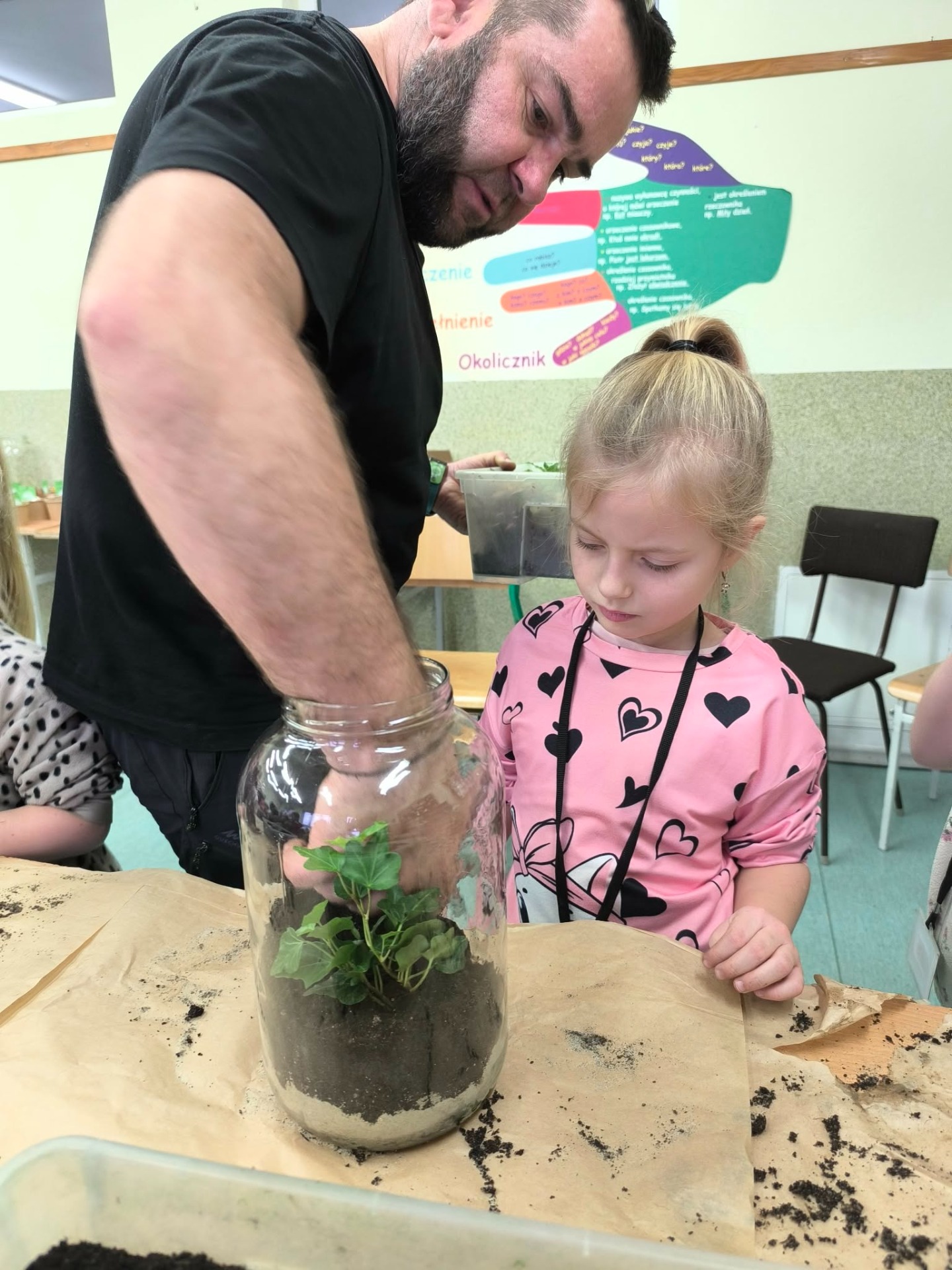 Drugą częścią spotkania stanowiły warsztaty „Las w słoiku”, podczas których uczestnicy stworzyli własne miniaturowe ekosystemy. Dzieci dowiedziały się, jak funkcjonuje las, dlaczego rośliny są tak ważne i jak dbać o przyrodę w codziennym życiu.