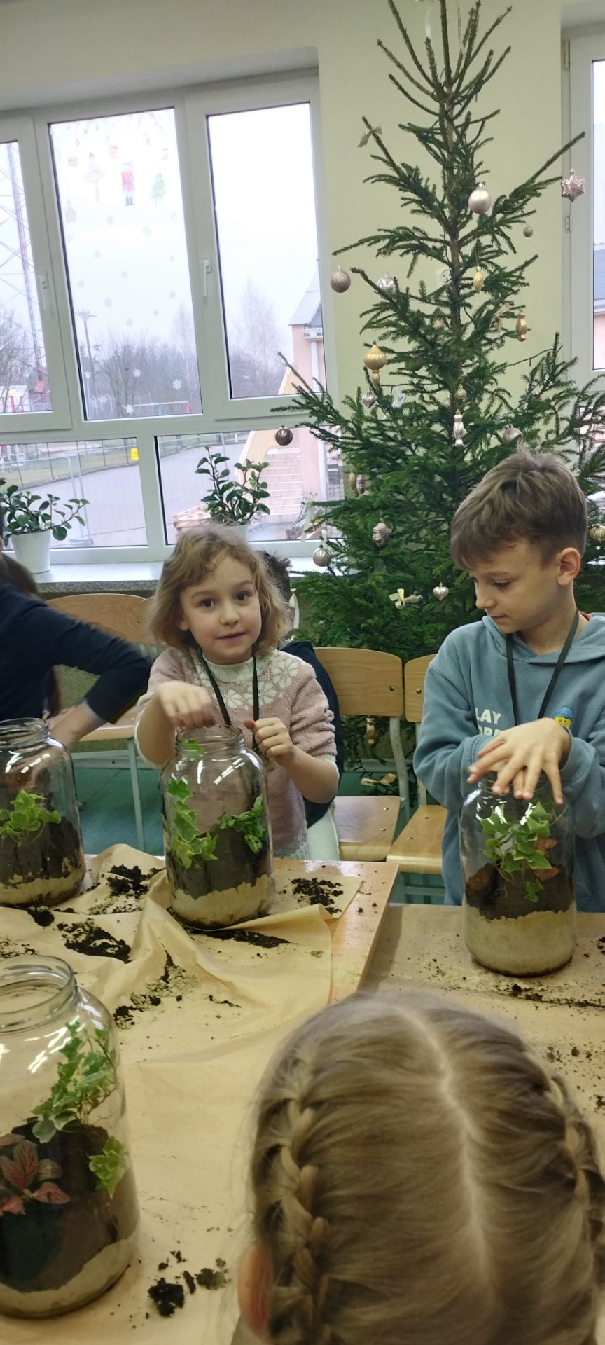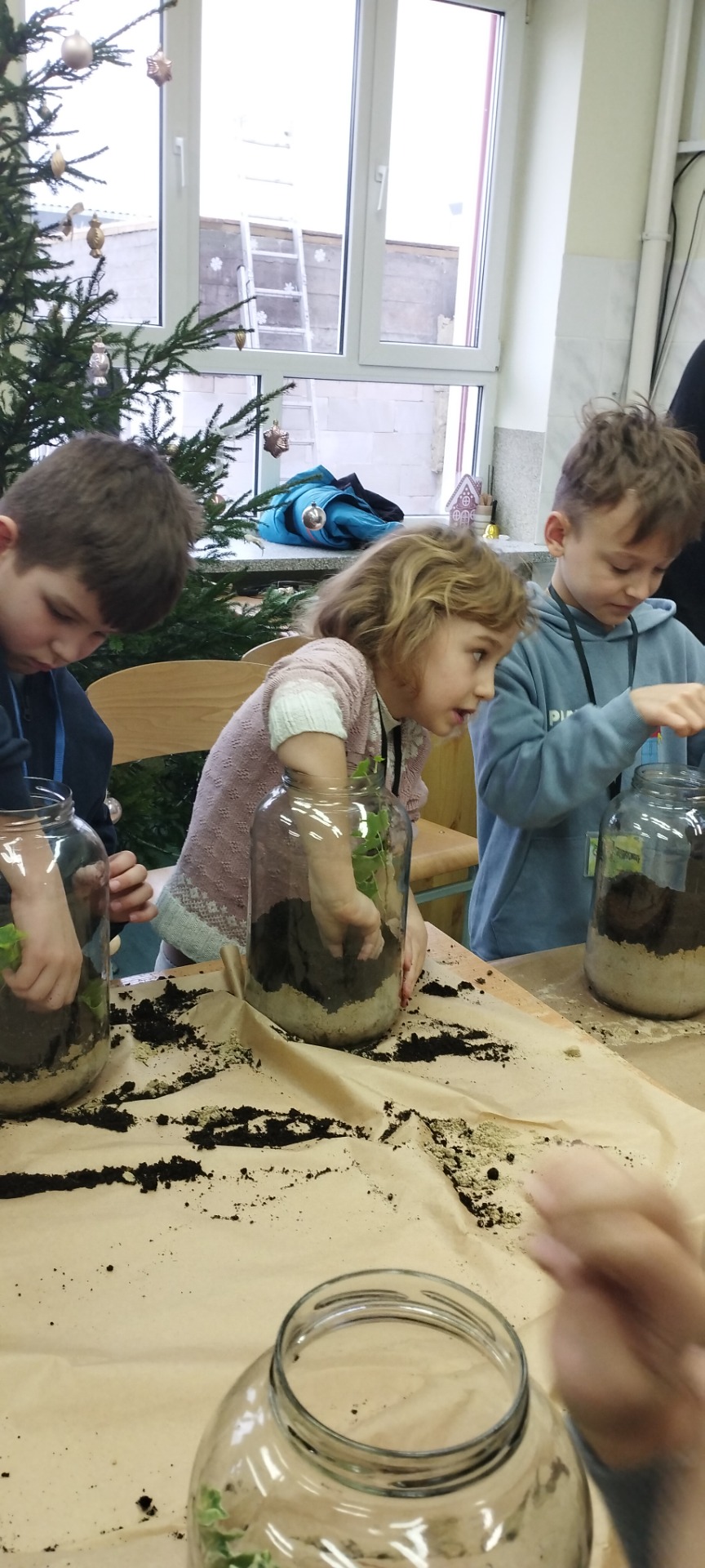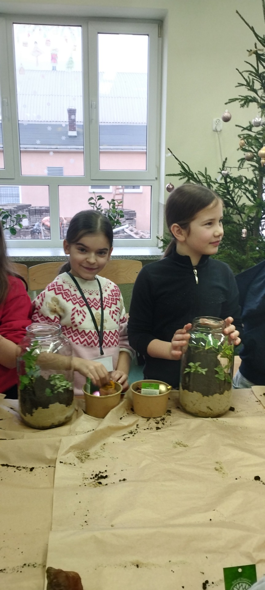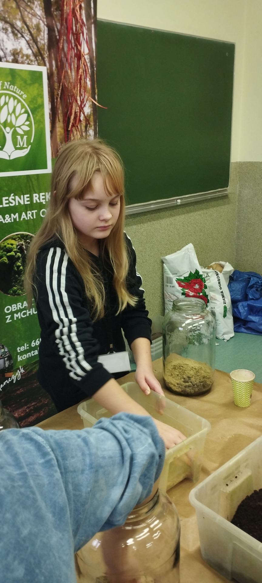 Drugą częścią spotkania stanowiły warsztaty „Las w słoiku”, podczas których uczestnicy stworzyli własne miniaturowe ekosystemy. Dzieci dowiedziały się, jak funkcjonuje las, dlaczego rośliny są tak ważne i jak dbać o przyrodę w codziennym życiu.