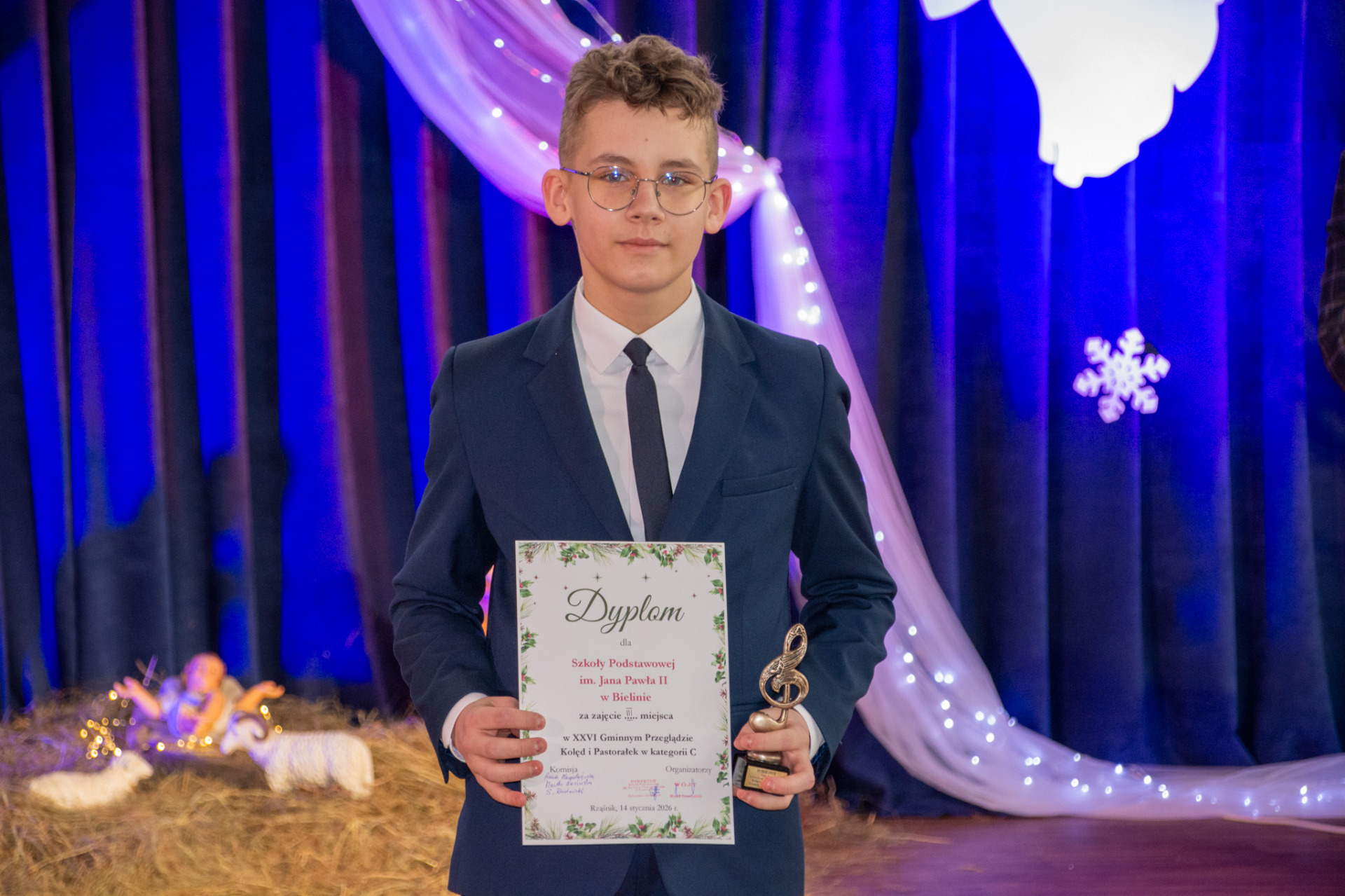 14 stycznia 2026r. w Szkole Podstawowej im. ks. Jana Twardowskiego w Rząśniku odbył się XXVI Gminny Przegląd Kolęd i Pastorałek. Utwory wykonane przez reprezentantów szkół z terenu naszej gminy, przypomniały nam wyjątkową atmosferę świąt.