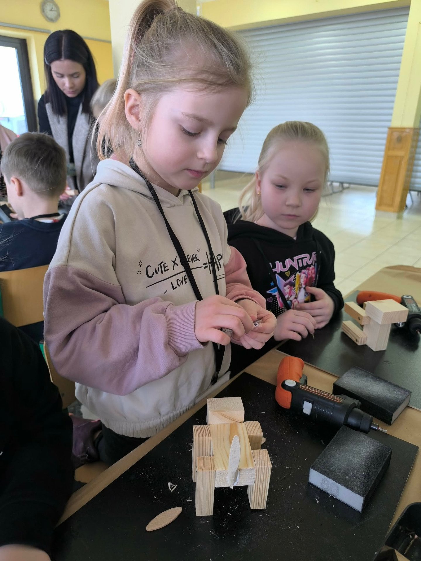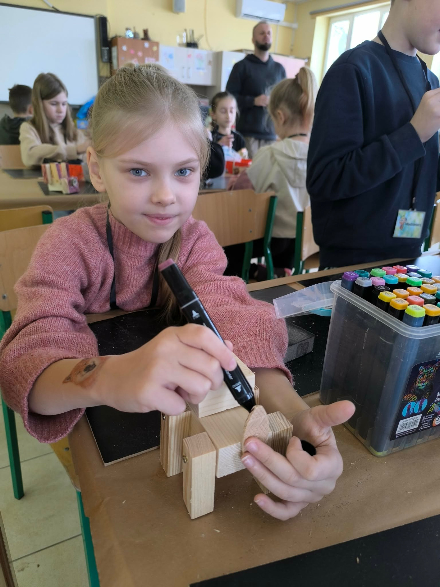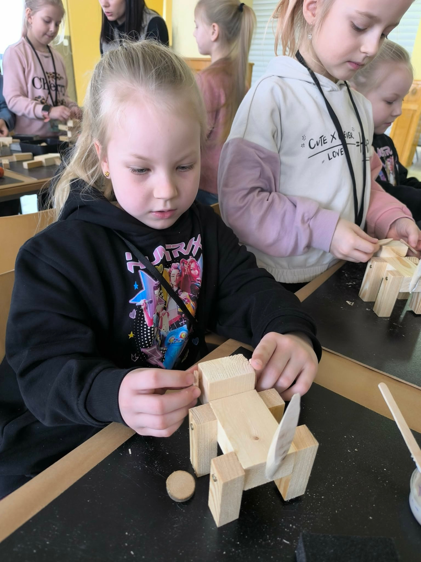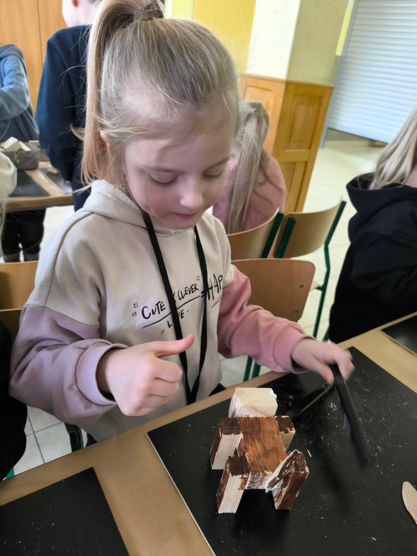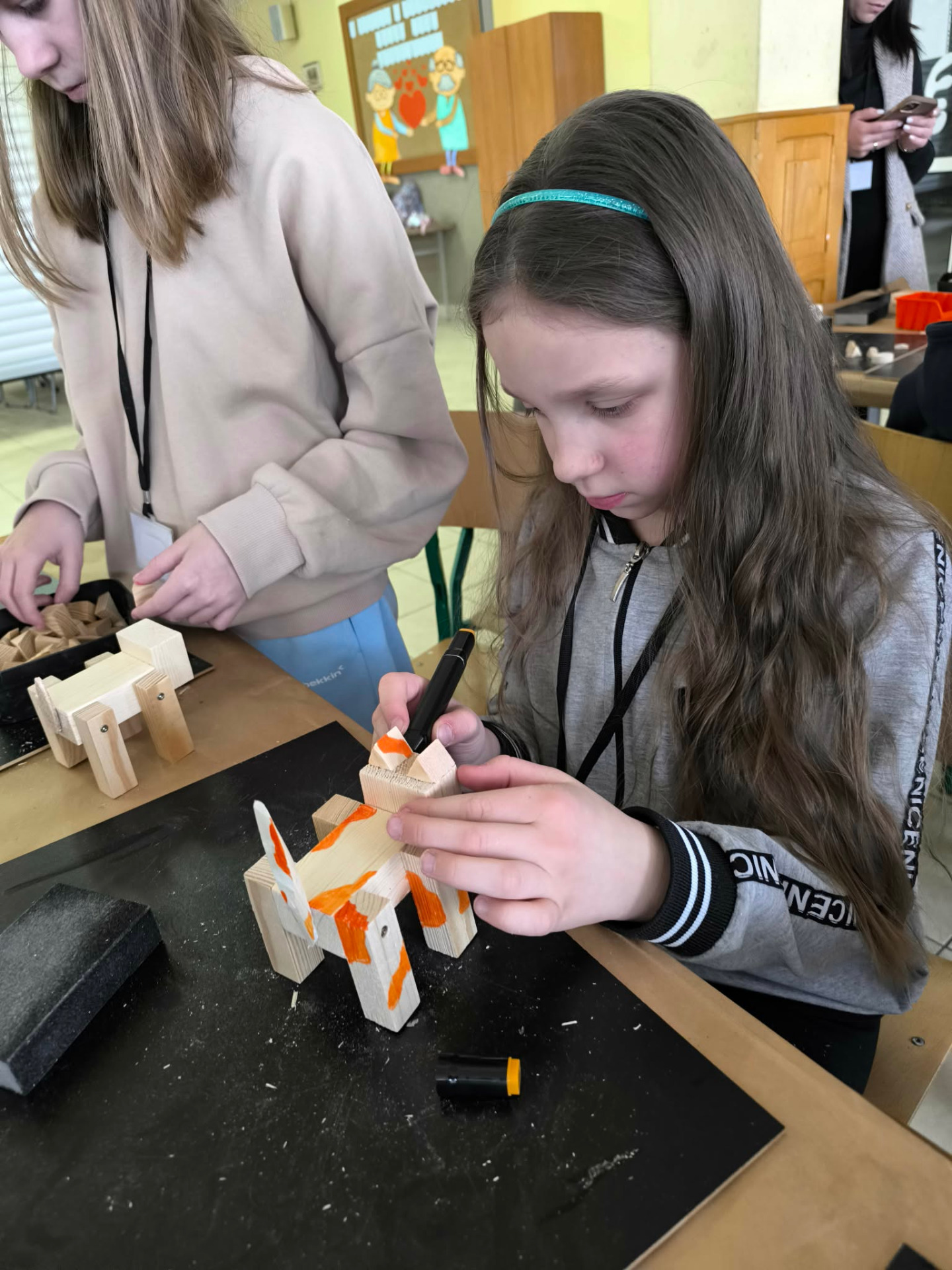 W drugiej części warsztatów uczestnicy wzięli udział w zajęciach kreatywnych, podczas których samodzielnie tworzyli z drewna zwierzęta domowe. Dzieci rozwijały wyobraźnię, zdolności manualne oraz uczyły się pracy z naturalnymi materiałami. Powstałe prace były nie tylko estetyczne, ale także stanowiły pamiątkę z zajęć.