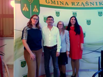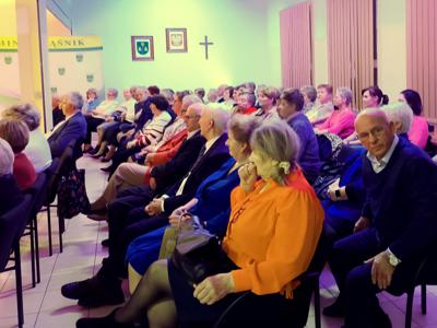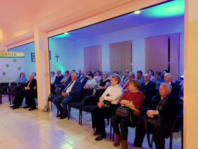14 listopada w sali konferencyjnej UG w Rząśniku odbyło się niepowtarzalne spotkanie, zorganizowane przez KGW ,,Kurpie Białe” w Rząśniku w ramach zadania publicznego Gminy Rząśnik - ,,Działalność wspomagająca rozwój wspólnot i społeczności lokalnych”. Głównym założeniem wydarzenia było wspólne spędzenie czasu na miłych rozmowach w atmosferze wspomnień. Z okazji dnia seniora, w imieniu Wójta Gminy Rząśnik Pana Marka Leszczyńskiego i własnym, wszystkim ,,wcześniej urodzonym” życzenia złożył Pan Sławomir Pierzynowski – dyr. GBP w Rząśniku. Gościem specjalnym była pisarka - Pani Marta Mrozińska, autorka trylogii słowiańskiej - ,,SMOCZA ŁZA”, ,,BURSZTYNOWY MIECZ”, ,,JELENI SZTYLET”, która do swoich powieści fantasy czerpie inspiracje z dawnych wierzeń, obyczajów i przesądów słowiańskich. Rozmowę z pisarką poprowadziła Pani Iza Koba – Mierzejewska, wieloletnia redaktorka czasopisma TYGODNIK CIECHANOWSKI, związana i znająca również tematykę folkloru regionu Kurpiów Puszczy Białej. Rozmowa przerodziła się w żywą dyskusję i wspomnienia niemal wszystkich uczestników spotkania. Jeszcze jednym gościem, choć niezapowiedzianym, był Pan Grzegorz Madaliński – student muzykologii, który pisze pracę badawczą na temat historii i działalności zespołu folklorystycznego ,,Kurpie Białe”, prowadzonego niemal 40 lat przez Pana Bonifacego Kozłowskiego. I tu dopiero zaczęły się wspomnienia i opowieści! Pan Grzegorz pozyskał kontakty do osób, które przez wiele lat były czynnymi członkami zespołu, a teraz obiecały udzielić wywiadów i dostarczyć materiałów na ten temat. Na spotkaniu nie zabrakło również domowych wypieków – ciasto drożdżowe ze swojskimi powidłami, bułeczki z serem, ciastka z maszynki, makowce i prawdziwa babeczka. Były też tańce przy harmonii pedałowej i bębenku w wykonaniu braci Borków.